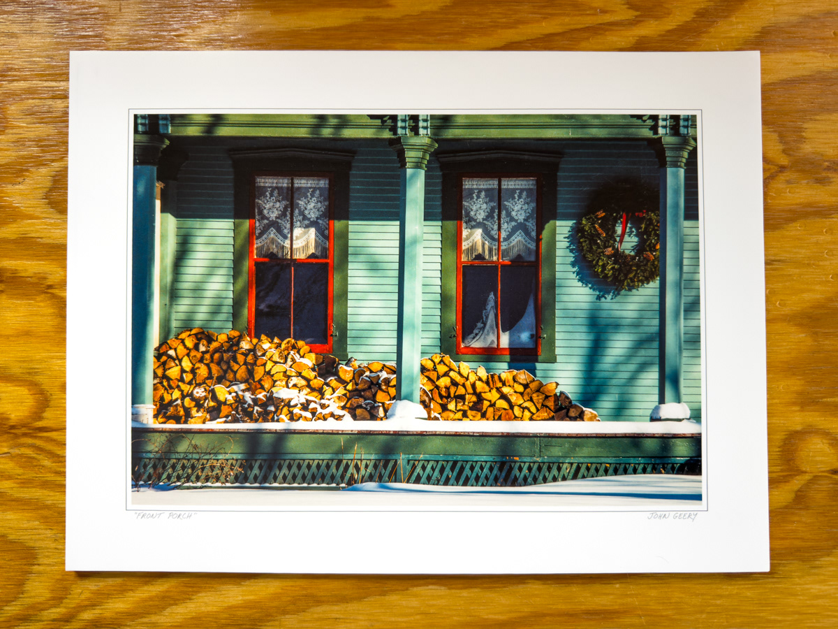 The 12x16 size I print with an 9x13 image area and a one and a half inch white border. I print a black accent line and the title and my name beneath the image. This has been my most popular, most collectible, most gift-giveable size. Here's a sample of how they look:
